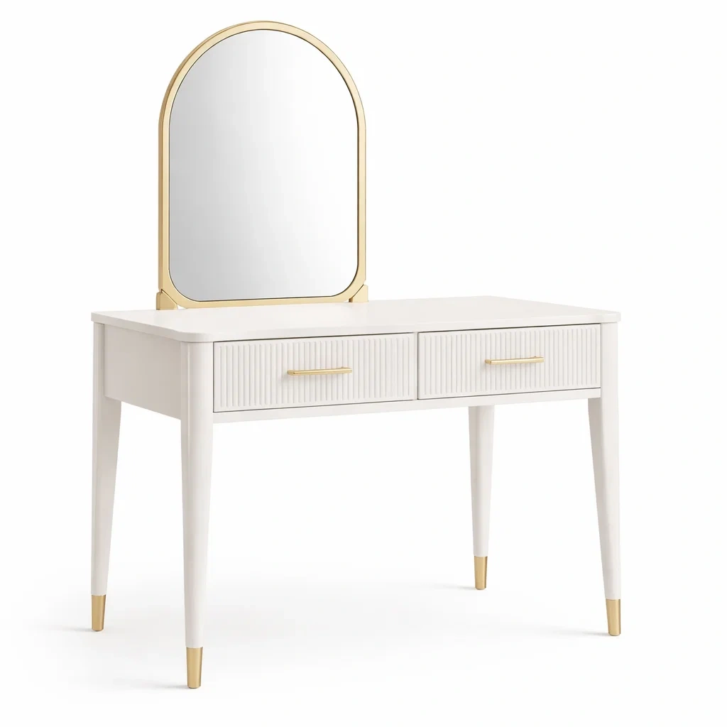Tavolo da toeletta bianco con specchio ad arco