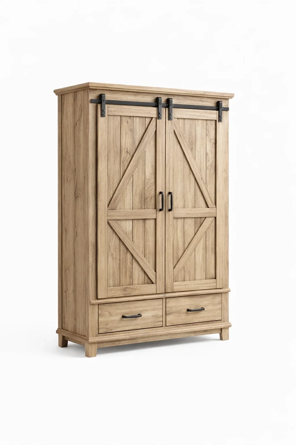 DescrizioneArmadio in legno naturale con ante scorrevoli e struttura robusta caratterizzato da un design rustico essenziale