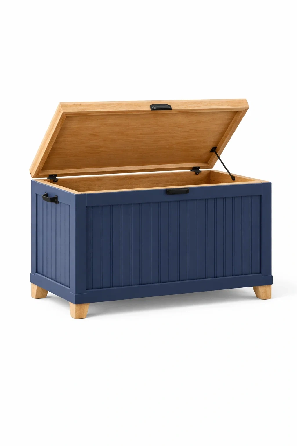 DescrizioneCassapanca in legno blu con interno naturale finitura opaca struttura compatta ed estetica equilibrata